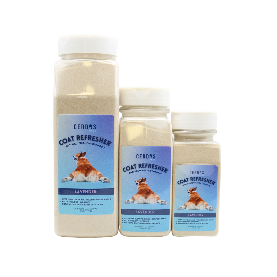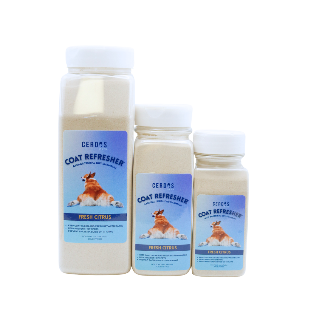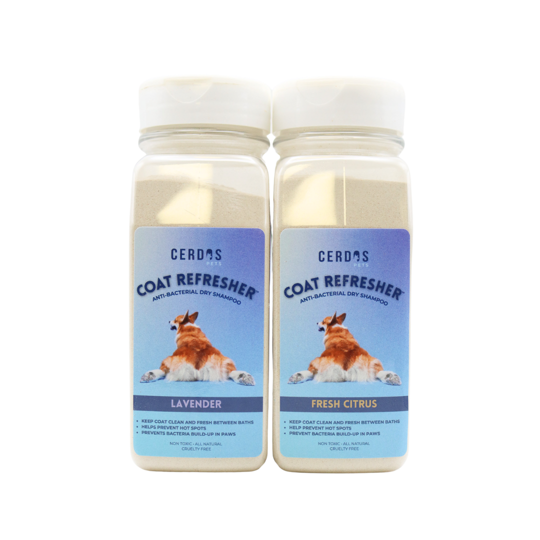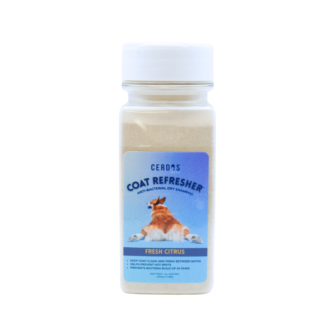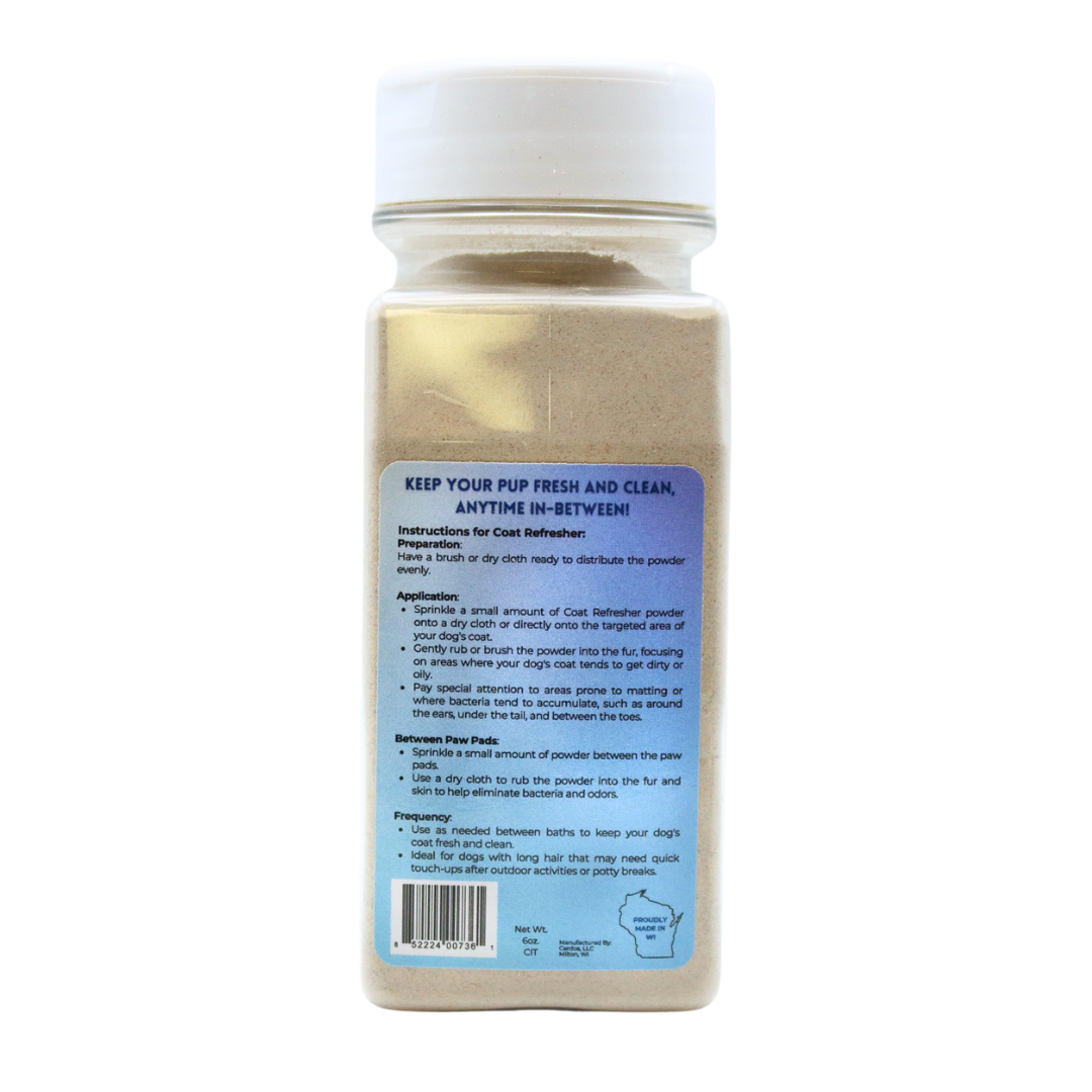 Say goodbye to dirty, smelly coats and hello to a fresh, clean pup! Coat Refresher™ is an all-natural, antibacterial dry shampoo designed to keep your furry friend fresh and odor-free between baths. This product is perfect for dogs that dislike water, pups with sensitive skin, and pet parents looking for an easy, mess-free way to maintain a clean coat.